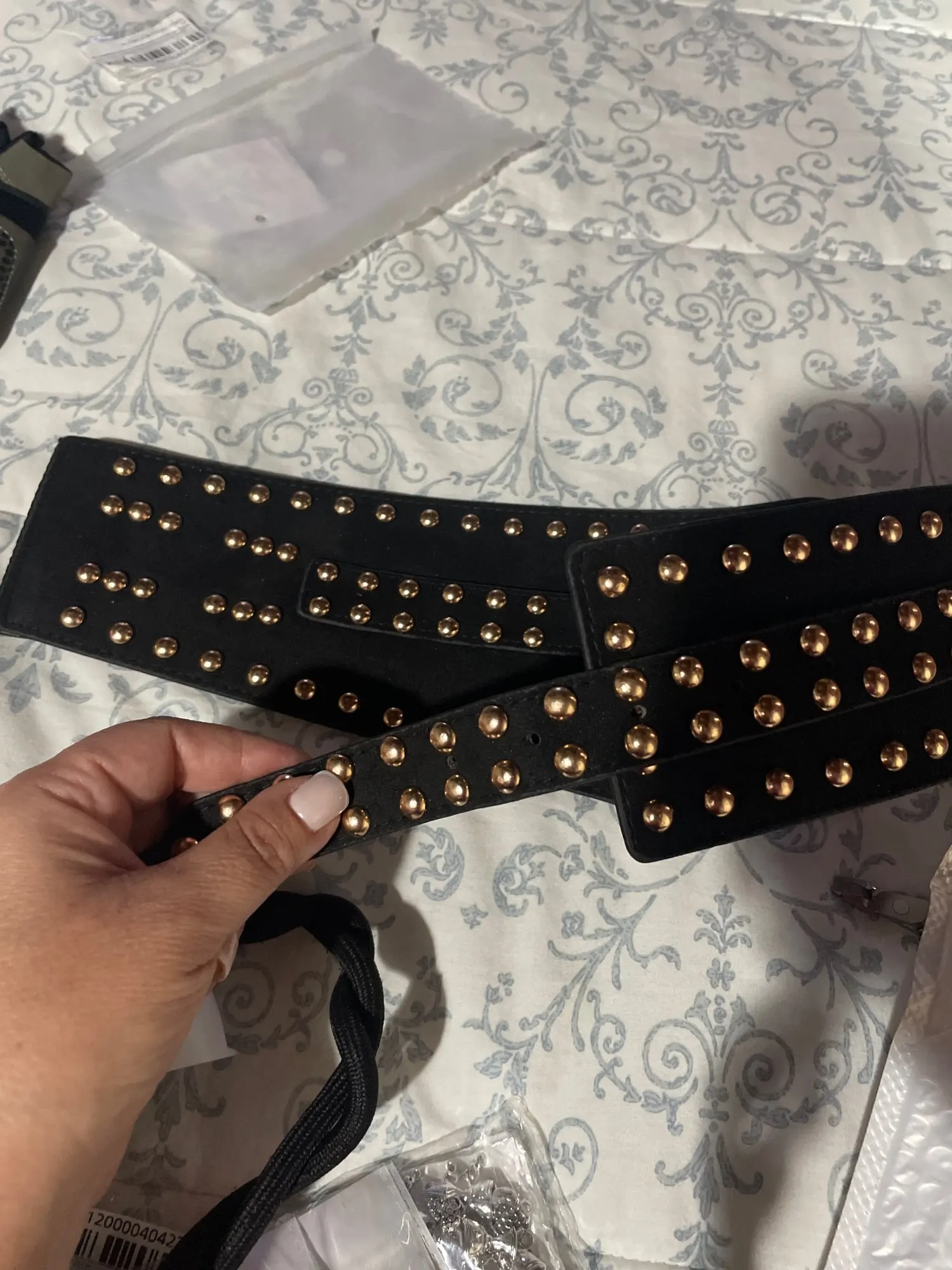 Oversized bamboo-textured buckle for visual interest
